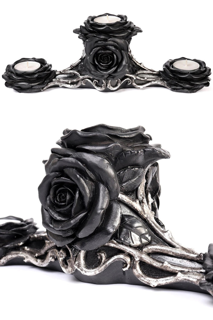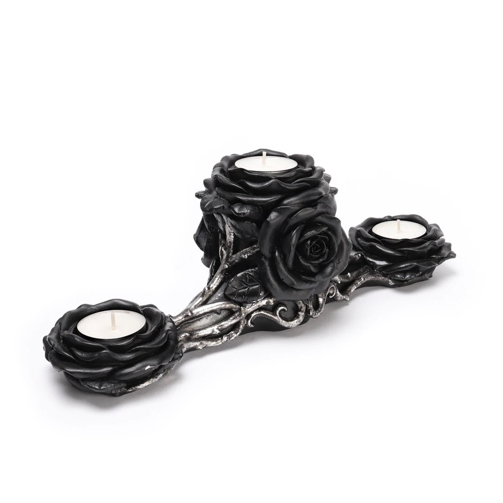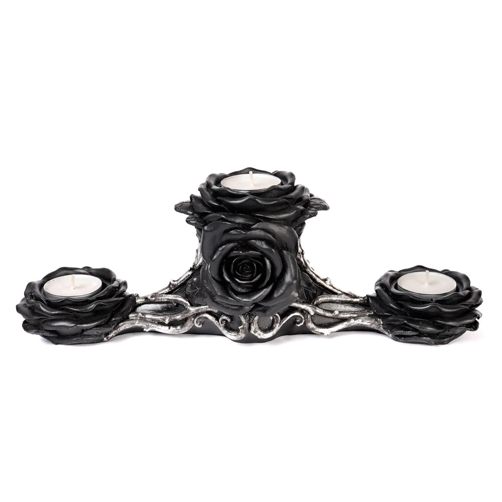 Alchemy Gothic Black Rose Triple T-Light Holder.