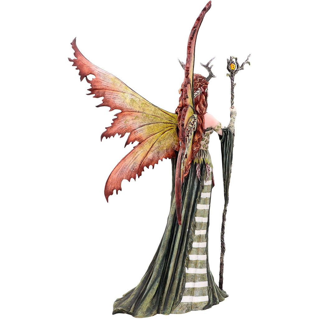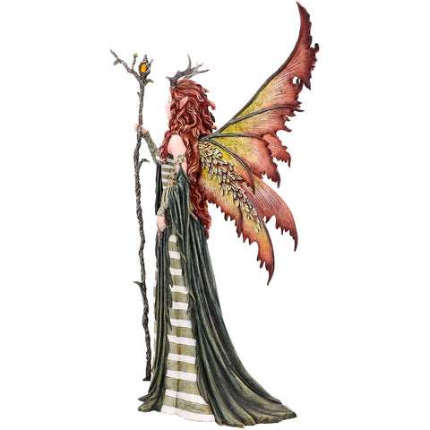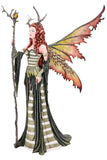 By Amy Brown. A large auburn-haired fairy stands tall, her large leaf-like wings raised to the sky. Her eyes look forwards, surveying her forest home, preparing to use her enchanted staff to protect her realm. Emerging from beneath her thick hair, a pair of twisted antlers rise. Cast in the finest resin before being hand-painted, this piece would make the perfect gift for anyone wanting to add a little natural magic into their life.