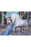Own a discontinued treasure with the enchanting Bluebell Woods Canvas Plaque by Anne Stokes. This captivating artwork, a true collector's item, features the ethereal beauty of a maiden and unicorn amidst a magical bluebell forest.