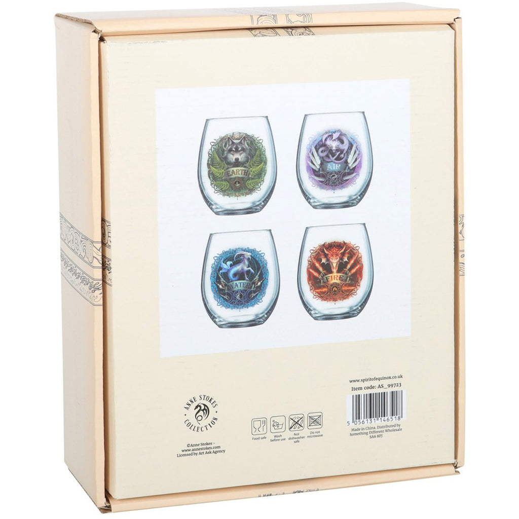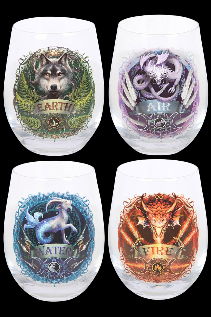 Unleash the Elements: Anne Stokes Elemental Stemless Wine Glasses (Set of 4)