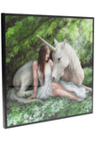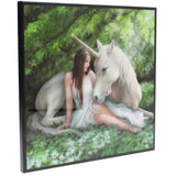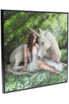 Have your favourite Anne Stokes artwork on display with unparalleled clarity! Beneath the hanging branches of an oak tree, sunlight streaming onto the long soft grass around them, a woman and a Unicorn lie, staring at each other lovingly. The white of her flowing white dress is as pure as the white of the Unicorn and the small wildflowers surrounding them. Around her head, a small cord keeps a jewel in place on her forehead. This Crystal Clear picture adds a never-before-seen richness and depth to Anne’s already vivid art.