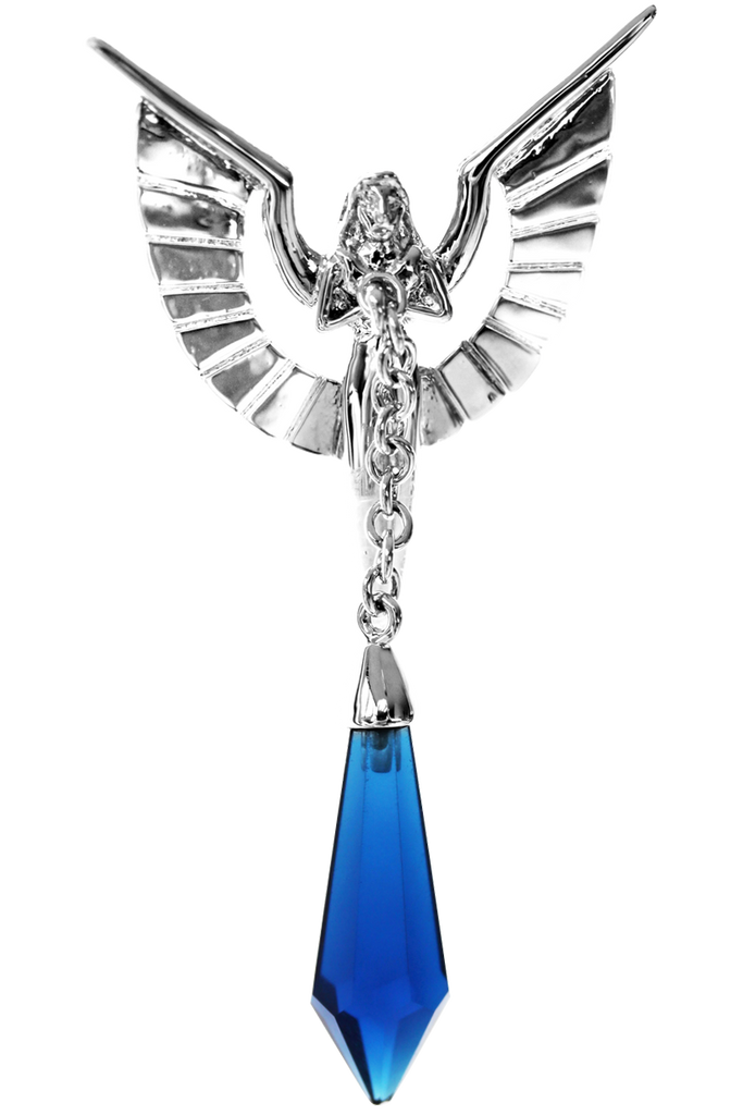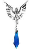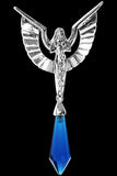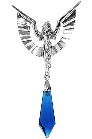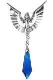 Designed by Anne Stokes and crafted in brass with sterling silver plating and presented with a silvered chain and satin pouch, along with a fully descriptive leaflet.
