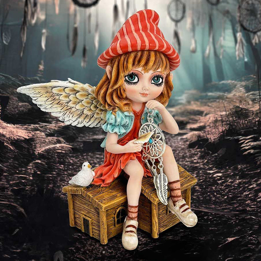 Autumn Fae Fairy Figurine with Dream Catcher and Bird.