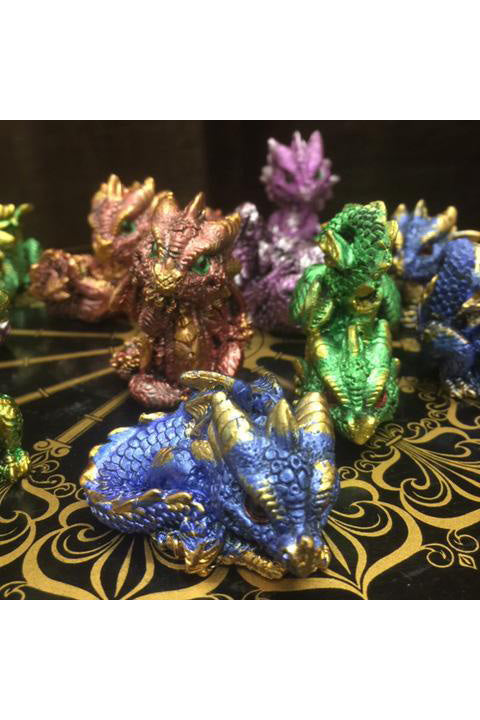 Sold as a set of 12 individual Baby Dragons in 4 Colours. Green, Purple, Red and Blue. Made from Resin and Hand Painted.