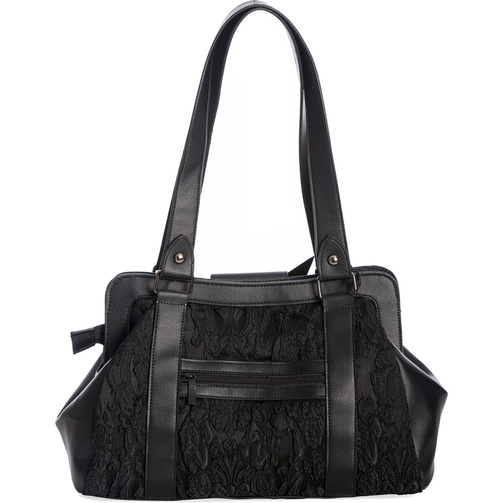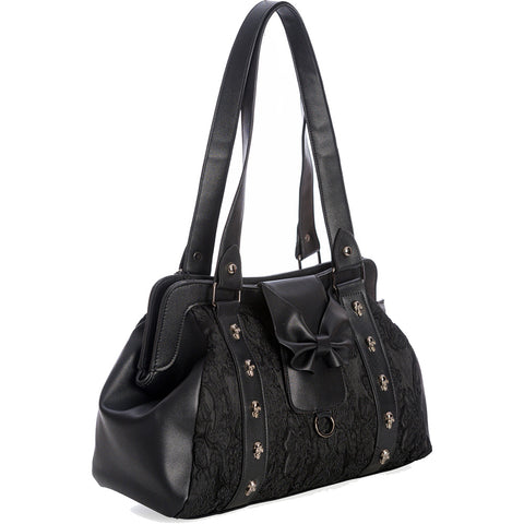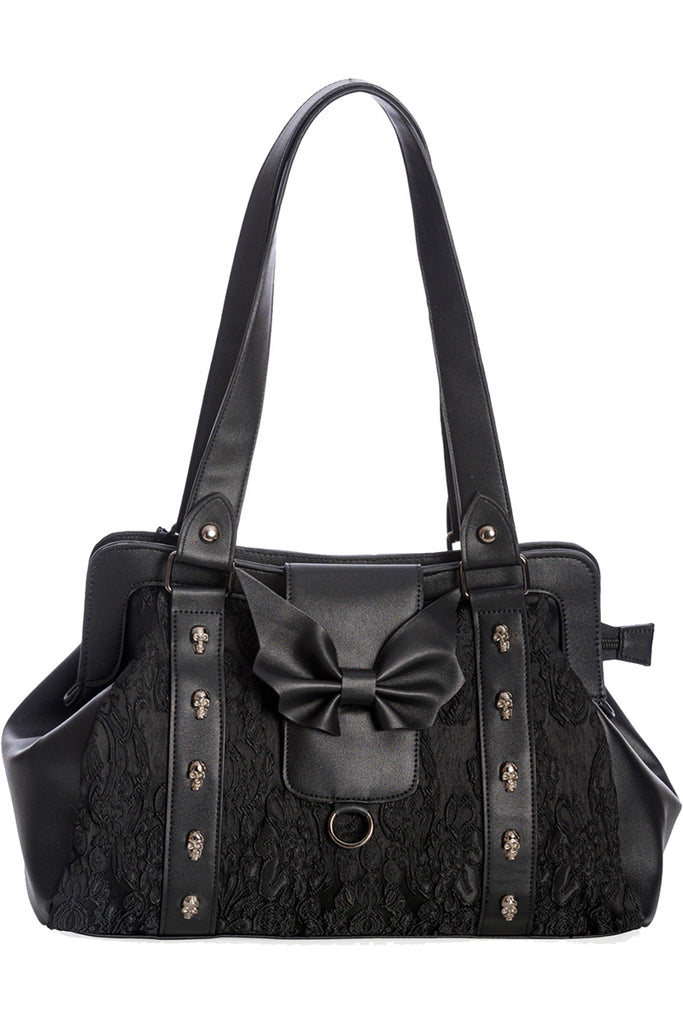 Black Flocked Gothic Style Handbag with Bat Bow Detail.