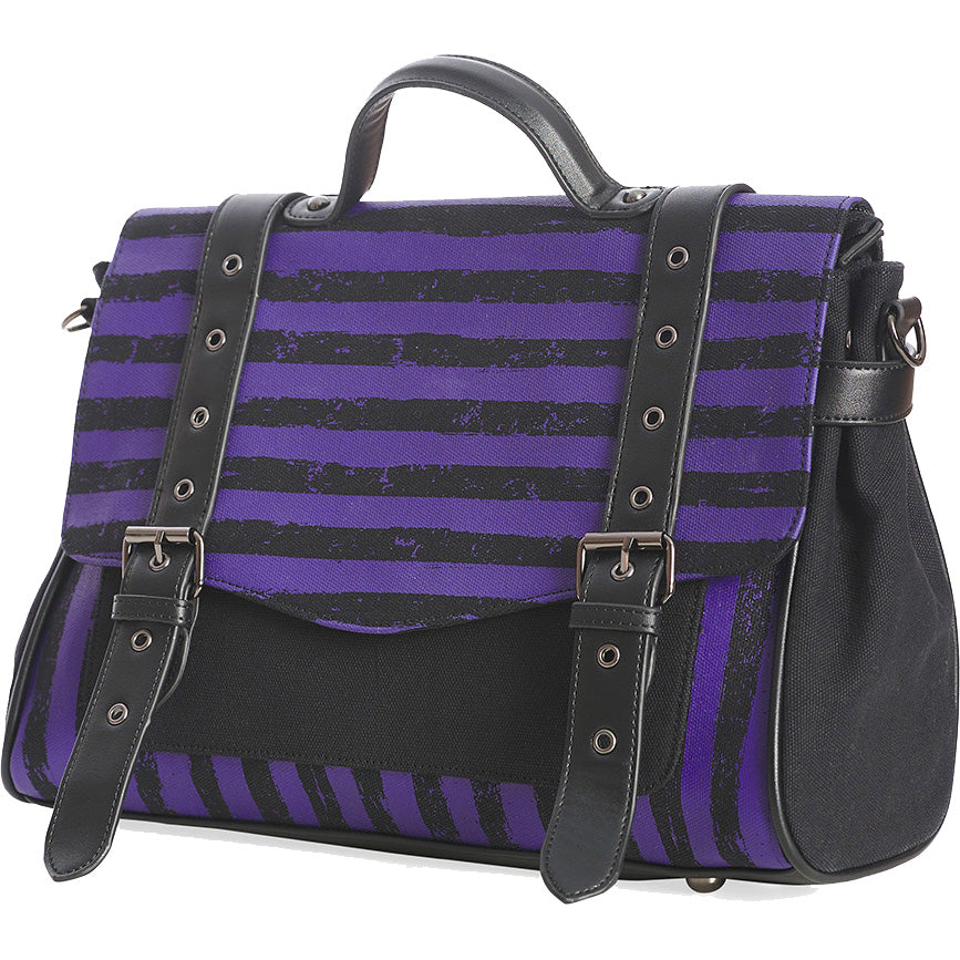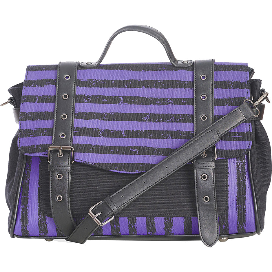 Purple and Black Stripped Messenger Bag.