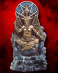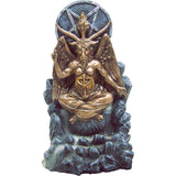 This mystical Incense Burner is the perfect symbol of free-thinking heresy. Resting under a large pentagram sits the Baphomet, symbolising the total sum of the universe. Legs ending in cloven hooves, the staff of Asclepius rises from their crotch. Their right arm is raised in a magical blessing, while their left arm is stretched downwards and outwards invitingly. Cast in high-quality resin before being carefully hand-painted.