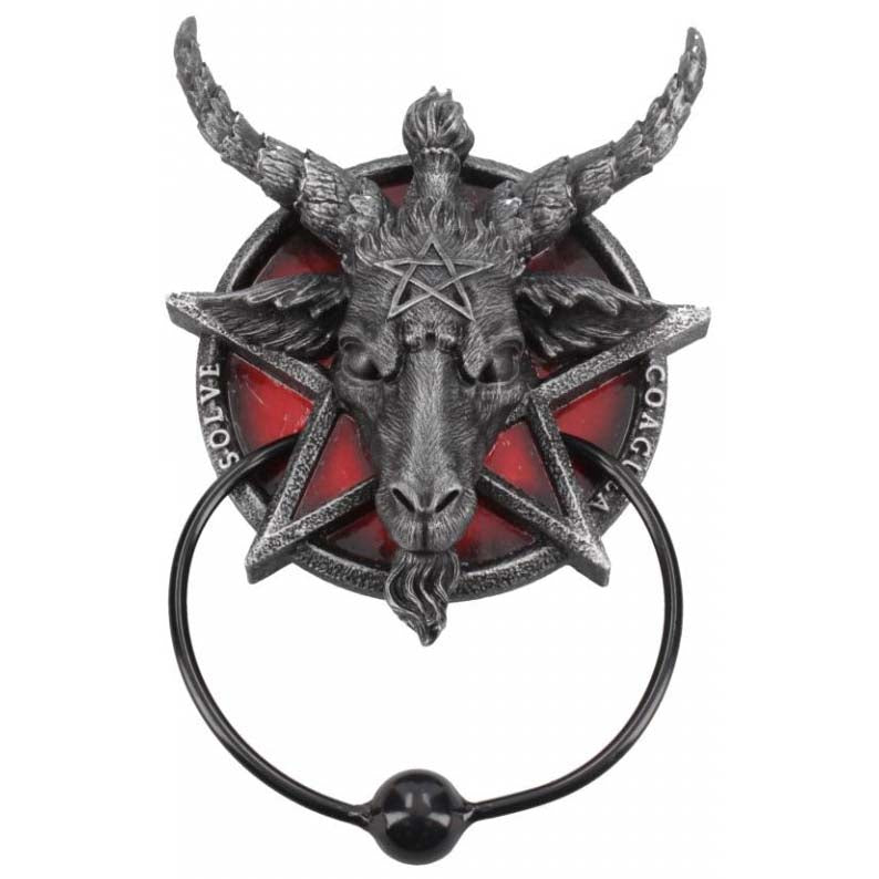 This occult Door Knocker is available exclusively through Nemesis Now. Above a patent red background sits a pentagram, covered by the head of a triple-horned Sabbatic Goat. On its head, a pentagram is raised and the words ‘Solve’ and ‘Coagula’ adorn the circular base. Cast in the finest resin before being painstakingly hand-painted, this piece would make the perfect addition to any Gothic home.