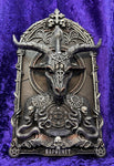 A symbol of the occult, Baphomet can be seen with a torch between its horns and a pentagram on its forehead. Whilst its chest bares the Latin words SOLVE (separate) and COAGULA (join together), along with two snakes representing Male and Female. The Baphomet has long been a symbol of free-thinking and forbidden knowledge. Cast in the finest resin before being expertly hand-painted.