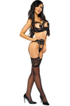 Three-Piece Ensemble: Includes a shelf bra, a suspender belt, and a thong for a complete and captivating look.
