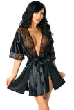 Indulge in luxurious comfort with the Beauty Night Delight Dressing Gown, a beautiful short satin robe designed to make you feel pampered and elegant. This set includes a matching panty and is beautifully accented with stunning lace that gracefully edges the front of the robe and the sleeves, adding a touch of sophisticated charm.