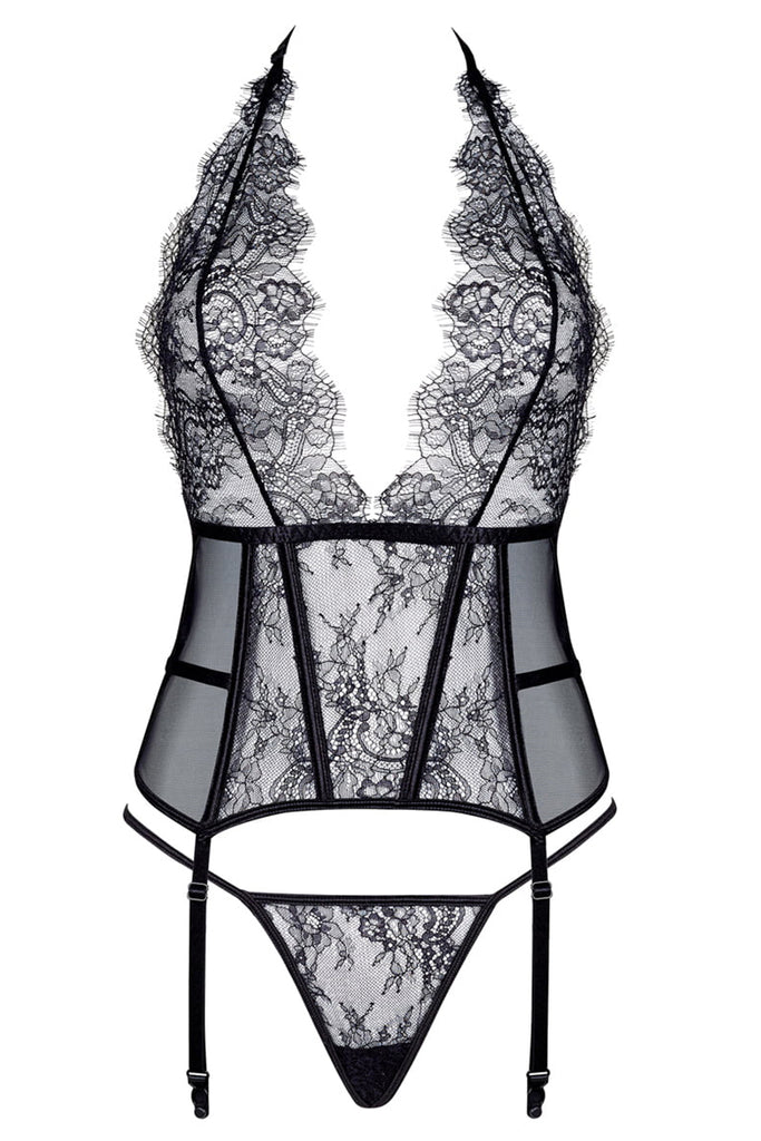 Complete Set: This ensemble includes a stunning corset with underwires, along with a matching thong and garter belts.
