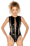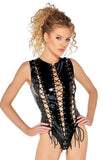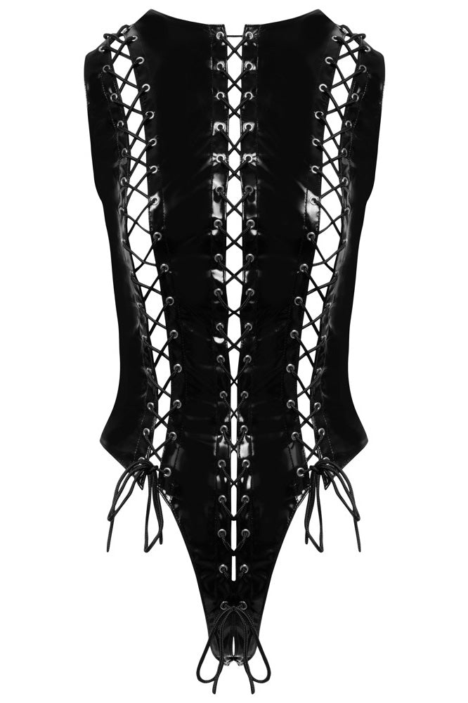 Unleash your inner confidence with the Black Level Cut-Out Vinyl Body. This extravagant one-piece is a statement of bold style, combining a sleek vinyl finish with strategic lacing and a form-fitting design.