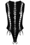 Striking Lacing: The front of the body features three adjustable laces, allowing you to customize the fit and look. The central lacing continues down through the crotch and up to the top of the buttocks, creating a daring and eye-catching detail.