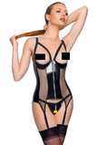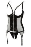 Comfort & Style: This basque strikes the perfect balance between style and comfort. The combination of shiny vinyl and net creates a visually stunning look, while the stretchy net insert at the back ensures a comfortable, figure-flattering fit.