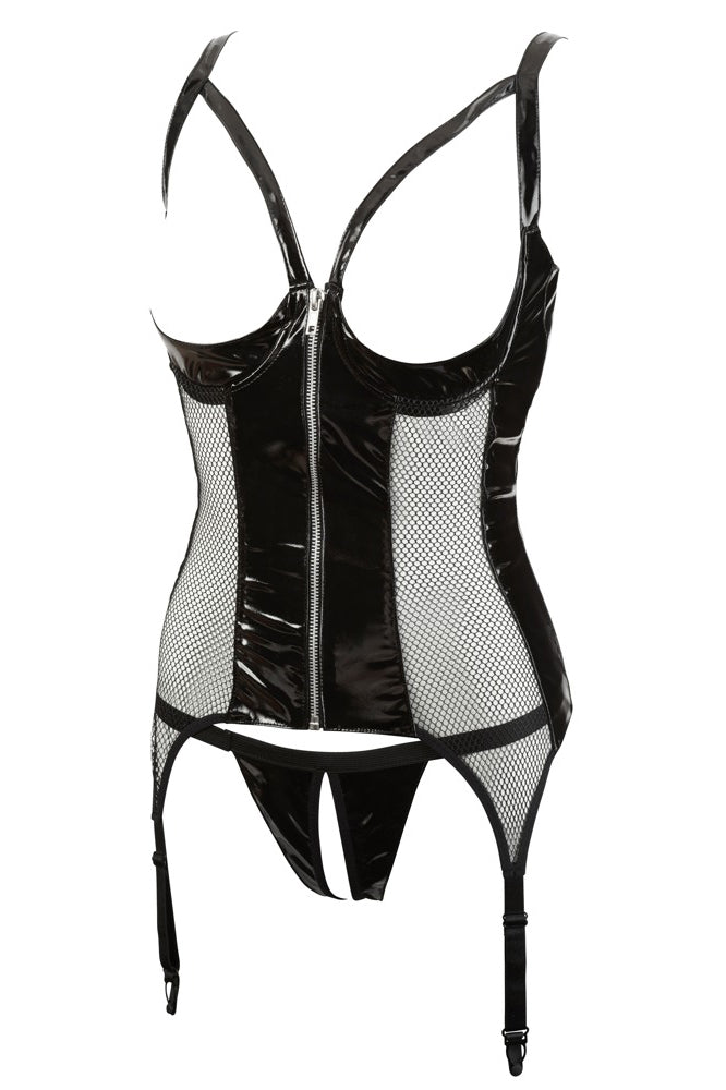 Complete Set: The basque comes with a cheeky, crotchless vinyl thong to complete the look.