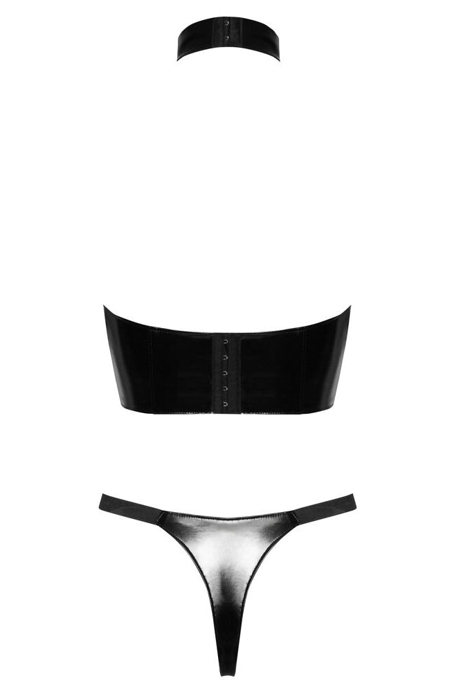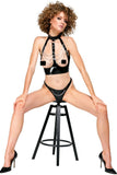 Matching Thong: The thong is crafted from high-shine black vinyl and features a chain and ring detail at the front. The stretchy side straps provide a comfortable, secure fit.