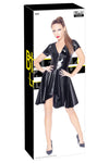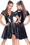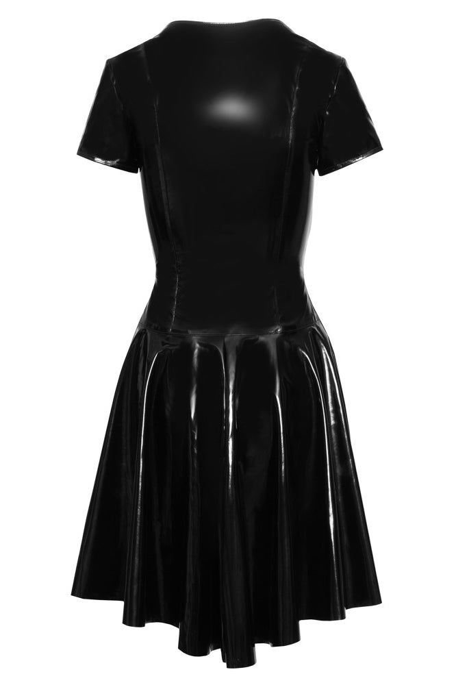 Designed for hot curves, the Black Level Vinyl Dress is a sleek and sexy statement piece. This short-sleeved dress is made from high-shine black vinyl, featuring a tight-fitting silhouette with a playful, flared skirt.