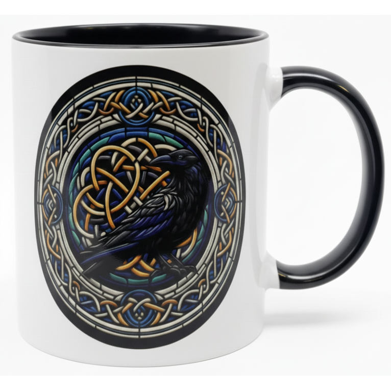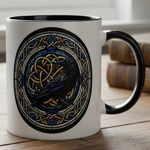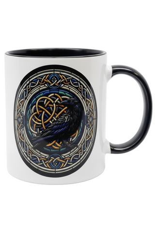 - The Enigmatic Raven: A majestic raven adorns the mug, its presence steeped in Celtic symbolism. Often associated with prophecy, knowledge, and transformation, the raven adds a touch of mystery and intrigue to your morning routine.