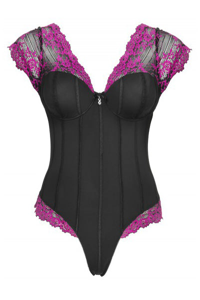 • Eye-catching Design: Crafted from sleek black fabric, the Lorrie Body features mesh panels adorned with beautiful fuchsia embroidery along the neckline, bikini area, and back. This striking combination adds a touch of sensuality without compromising on elegance.