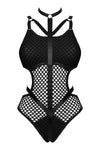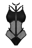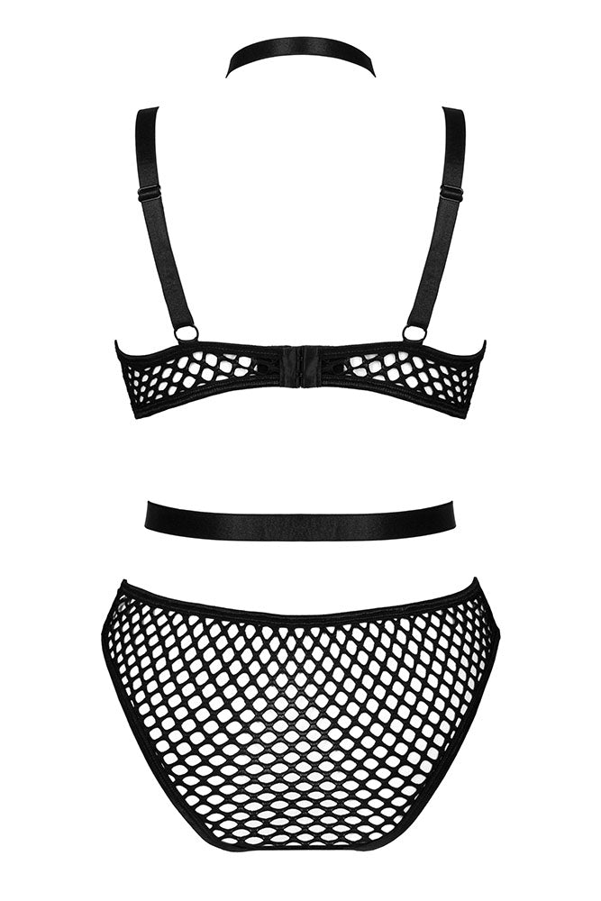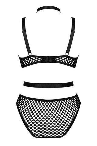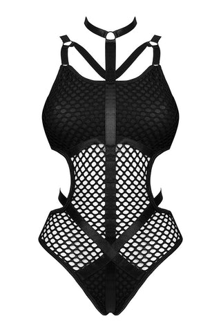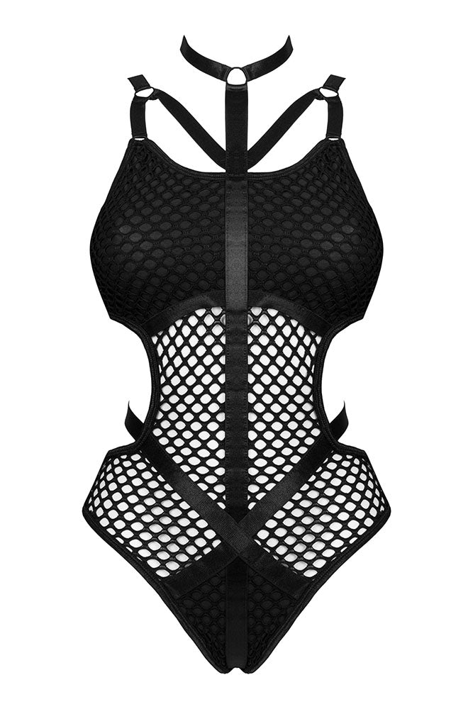 The unique and extremely original body from Minekom is an excellent choice for self-confident and body-confident women. Made of pleasant to the touch, soft fabrics, it perfectly adapts to any type of figure and can be successfully worn as a typical boudoir underwear. The classic bra straps have been replaced in this model with sexy ribbons. On the back there is a traditional fastener in the form of hooks, which additionally allow for a perfect fit to any bust size. The bra and the bottom of the panties have been additionally covered with a layer of opaque material, ensuring high comfort of their use. Both the front and back of the body and panties are made of extremely sexy mesh with fairly wide eyes, which is additionally wrapped in legant stripes composed of soft ribbon. Designed for special occasions, the bold Minekom body is sure to appeal to all those women who feel good in their skin in literally any situation.