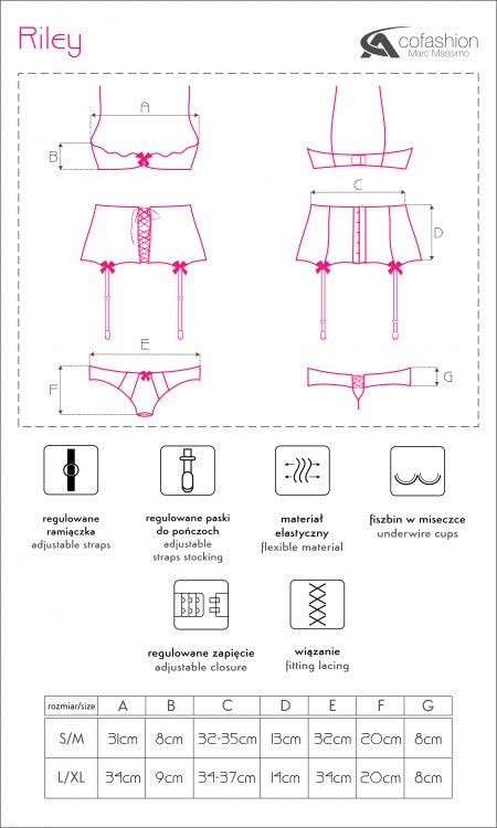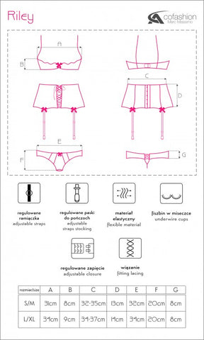 The bra provides ample support and uplift, while the garter belt adds a touch of vintage glamour. The matching panty completes the look with a seamless and comfortable finish. Whether you're planning a special night in or looking to add a touch of luxury to your everyday lingerie collection, the Riley set is the perfect choice.