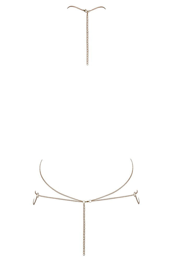 Elevate your look with the Cottelli Accessories Body Chain, a piece designed to create a seductive and glamorous look. This stunning, gold-coloured metal chain drapes beautifully over your body, creating a striking visual effect that is both elegant and alluring.