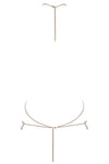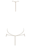 Intricate Design: This body chain is a single, continuous piece of jewelry that combines a neck chain, chest, waist, and hip chain. This intricate design accentuates your curves and adds a layer of sophistication to your look.