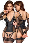 Embrace a world of captivating seduction with the Cottelli Bondage Captivating Basque, an all-in-one set designed for ultimate allure and effortless style. This stunning ensemble combines a beautiful, stretchy mix of sleek matte-look material and delicate net, creating a compelling contrast that's both elegant and edgy. With its silver-colored accessories and unique design features, this set offers a powerful and unforgettable look.