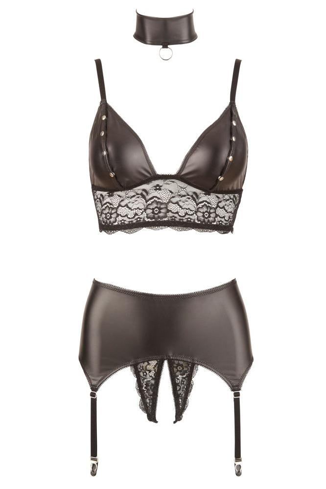 Discover a world of captivating style with the Cottelli Bondage Suspender Set, a beautiful ensemble designed for intimate moments. This comprehensive set features a bold fusion of a sleek matte-look material and delicate lace, complete with a full suite of bondage accessories.