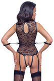 Discover the perfect fusion of delicate and daring with the Cottelli Bondage Suspender Strap Body. This captivating piece is a stunning blend of soft, luxurious lace and sleek matte-look details, creating a captivating look that is both comfortable and commanding.