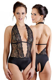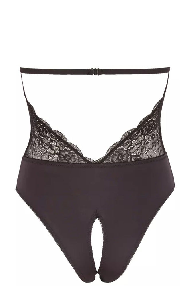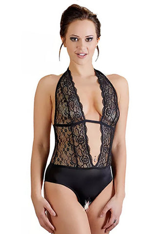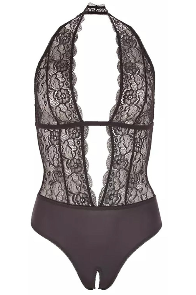 Unleash your most confident and seductive self with this Cottelli Cingerie Crotchless Body. Designed for women who embrace a sexy and provocative look, this black lace body is crafted with a very low, plunging neckline to highlight your décolletage.