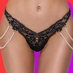 A seductive string! The string from Cottelli LINGERIE is made out of luxurious embroidered lace (front) and stretchy material for a perfect fit. There are two stretchy pearl chains at either side. They can be removed thanks to the small snap hooks.