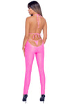 Make a bold statement in the Cottelli Party Pink Jumpsuit, an absolute eye-catcher in a vibrant, neon pink. This string jumpsuit is crafted from a shiny matte material that provides a striking look and a comfortable, skin-tight fit.