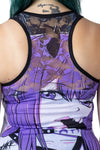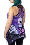 Lace panel Vest top with cartoon girl and pentagram design. Top has a racer style back with printed lace panel.