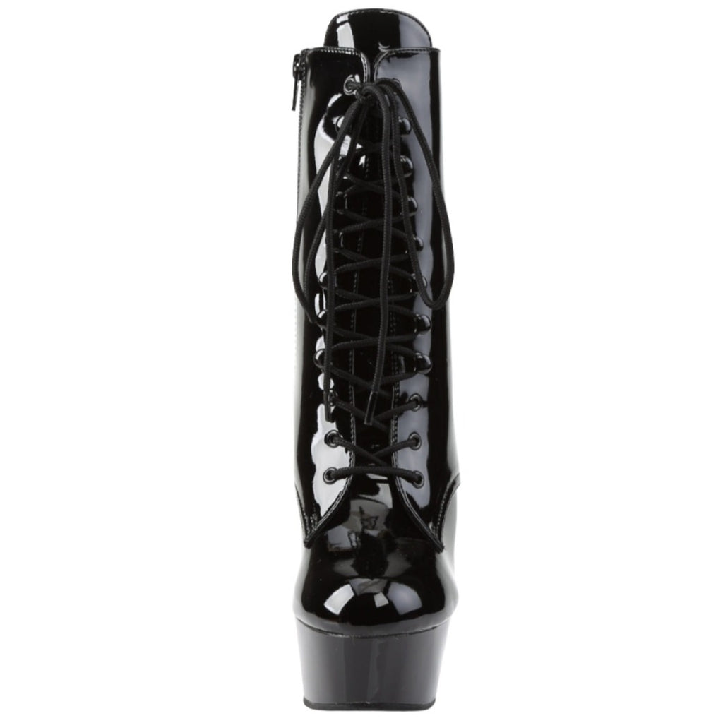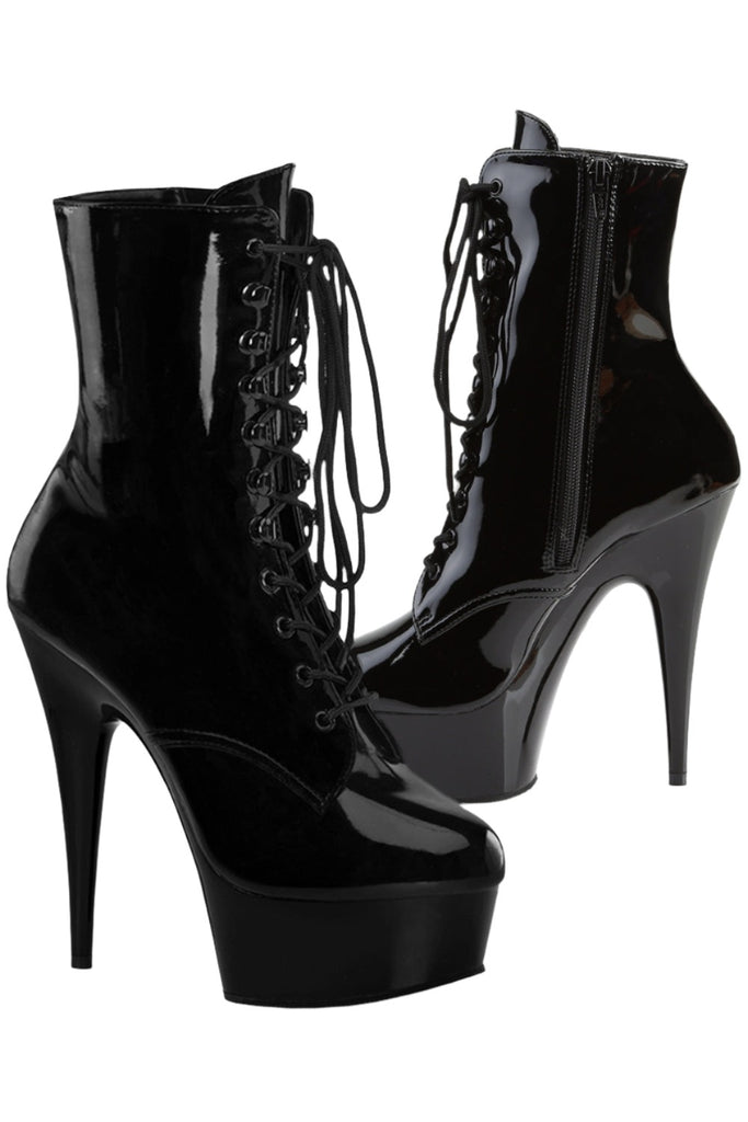 Pleaser DELIGHT-1020 Black Patent Lace-Up Platform Ankle Boots - Unleash Your Inner Diva