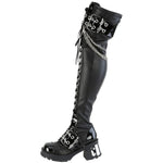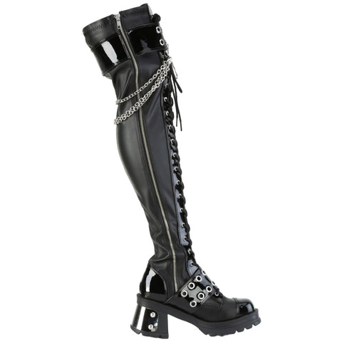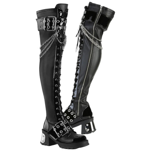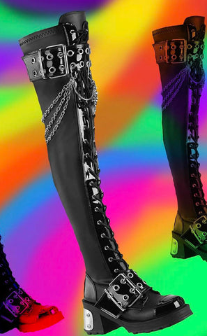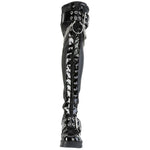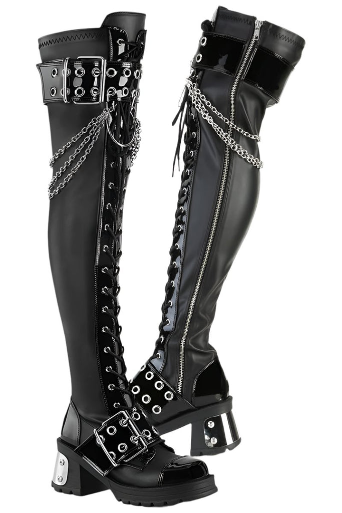 Search Keywords: DemoniaCult BRATTY-304, Over-the-Knee Boots, Platform Boots, Chunky Heel Boots, Vegan Leather Boots, Gothic Boots, Punk Boots, Double Buckle Boots, Edgy Footwear, Comfortable Platforms, Black Boots, DemoniaCult Shoes.