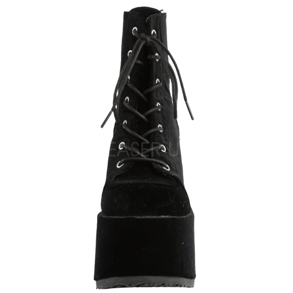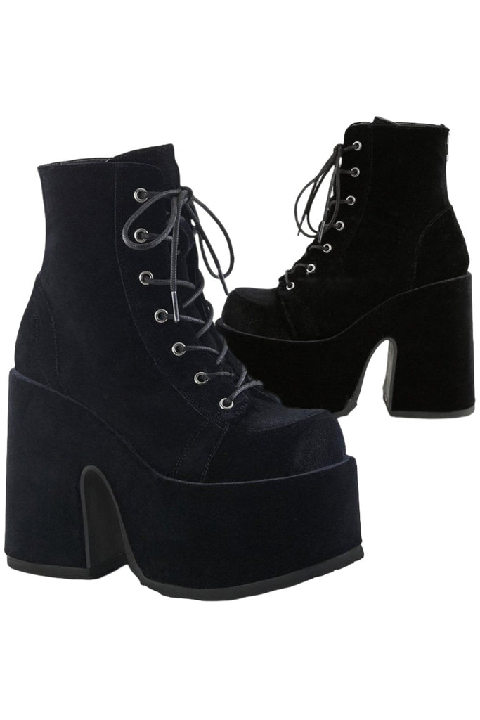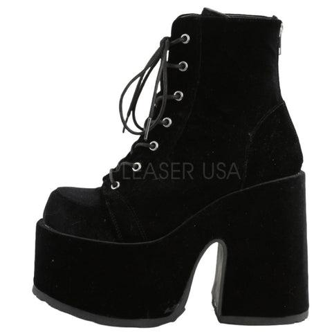 Step into the dark side in style. Order your DemoniaCult Camel-203 Velvet Ankle Boots today!