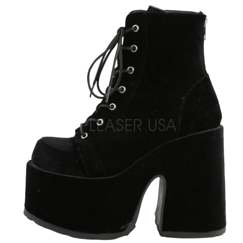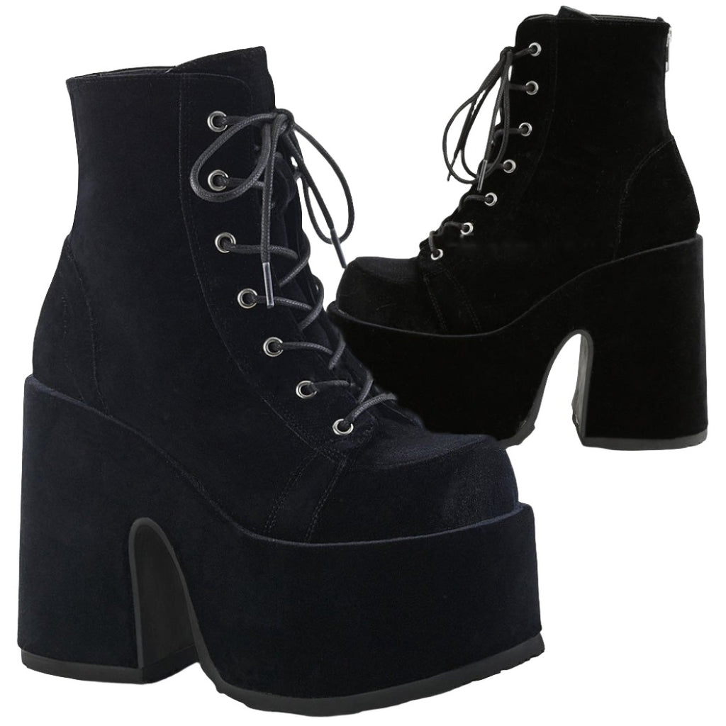 Inject a touch of dark romance into your everyday look with the DemoniaCult Camel-203 Velvet Ankle Boots. These luxurious boots boast a chunky heel, platform sole, and soft velvet upper, creating a statement piece perfect for those who embrace alternative style.