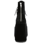 5" (127mm) Chunky Heel, 3" (75mm) Platform Lace-Up Ankle Boot, Metal Back Zip Closure.