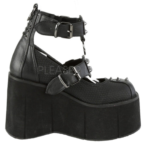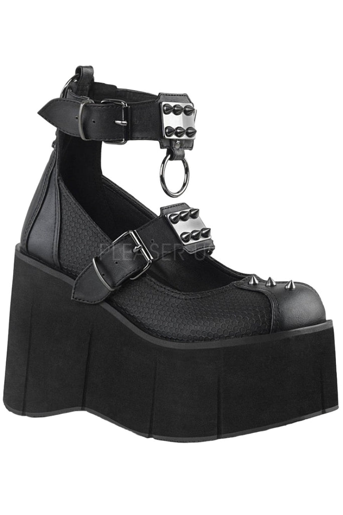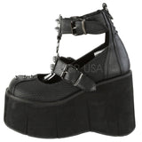 4 1/2" (114mm) Platform Maryjane. Featuring Dual Buckle Straps with Cone Spike Studded Metal Plates and O-Ring Details.