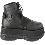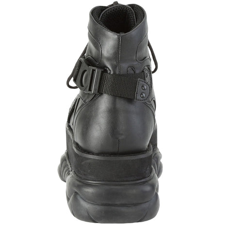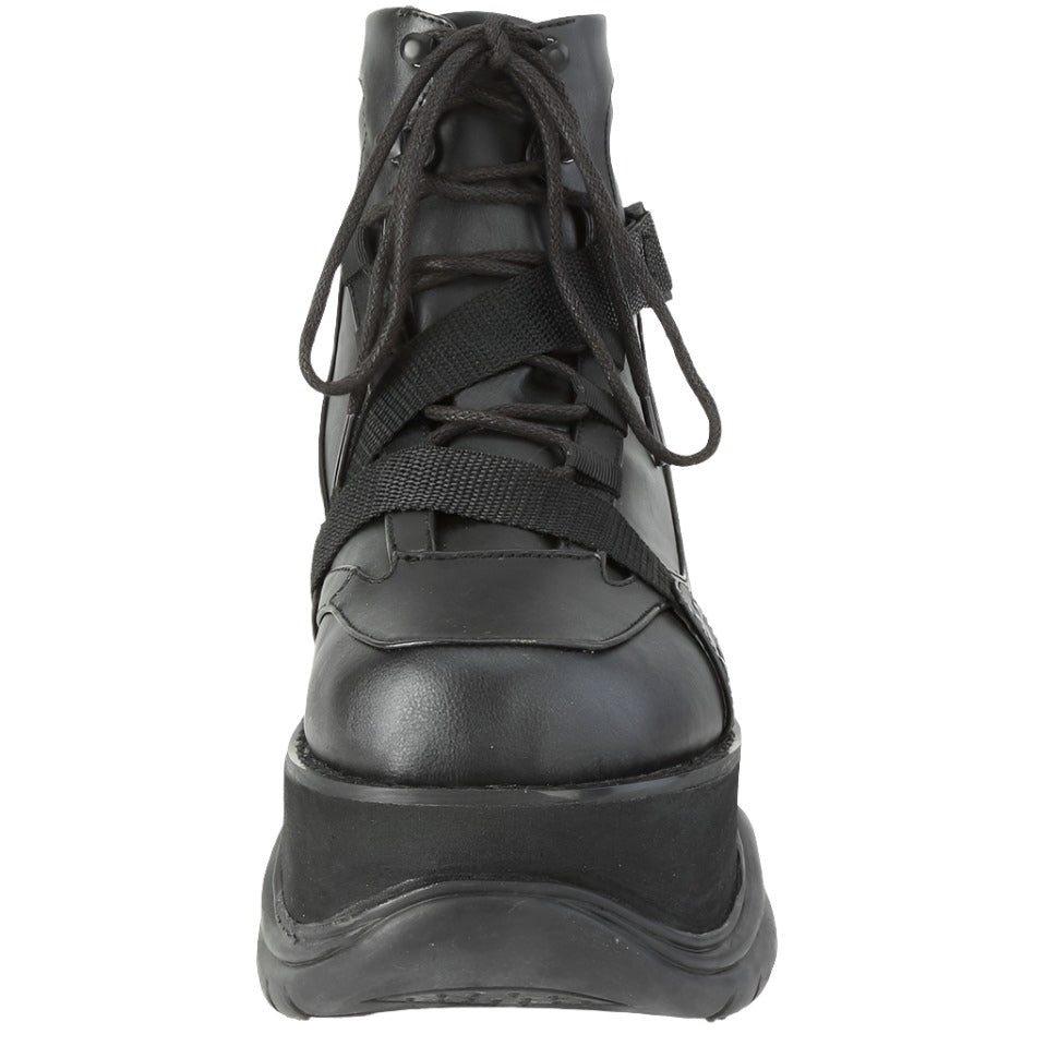 3" (76mm) Platform Lace-Up Front Ankle Boot Featuring Zig-Zag Strap with Quick Release Plastic Buckle.
