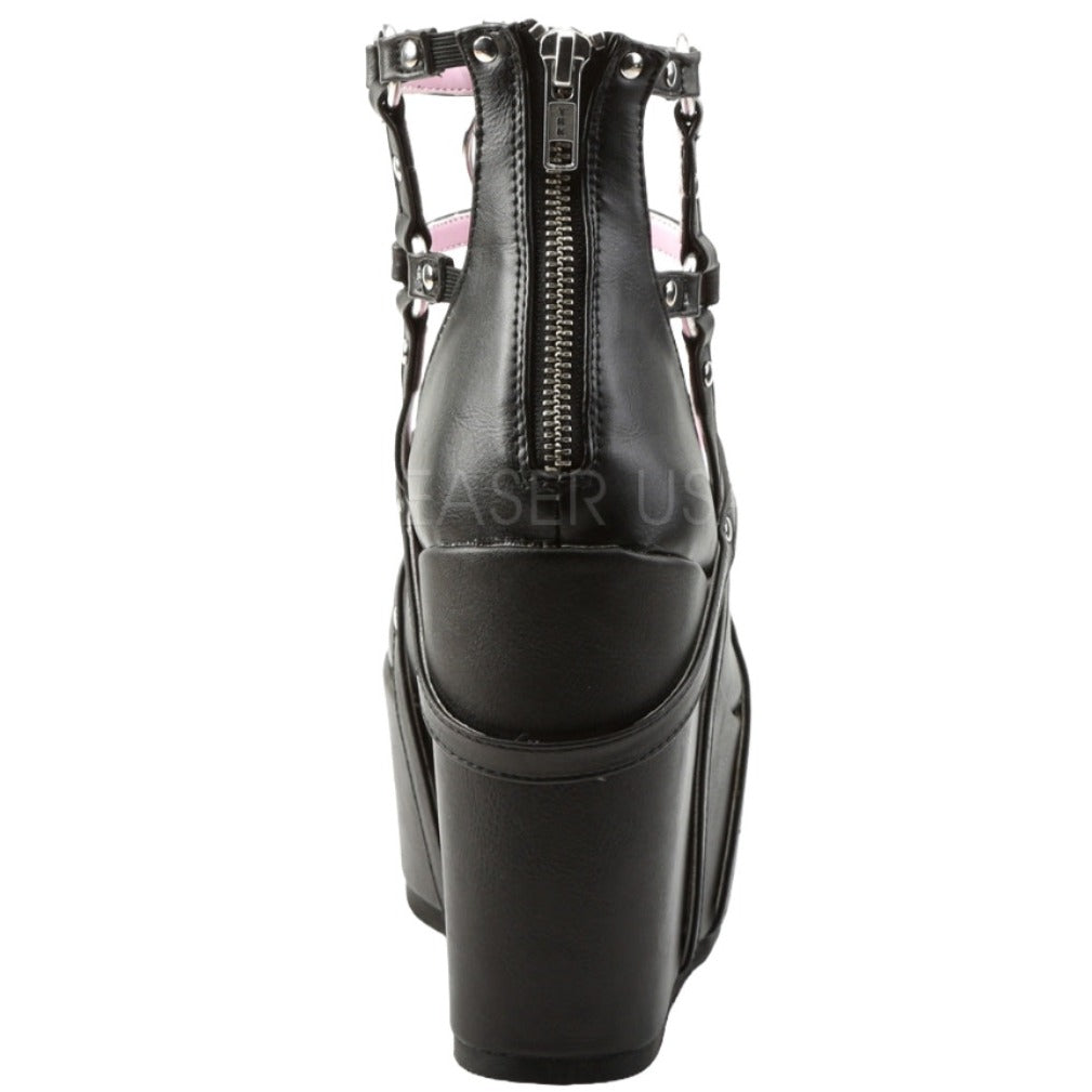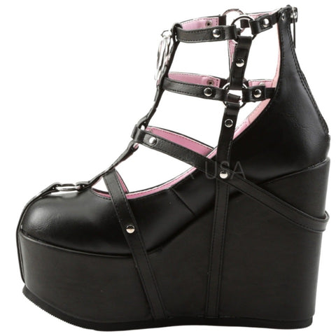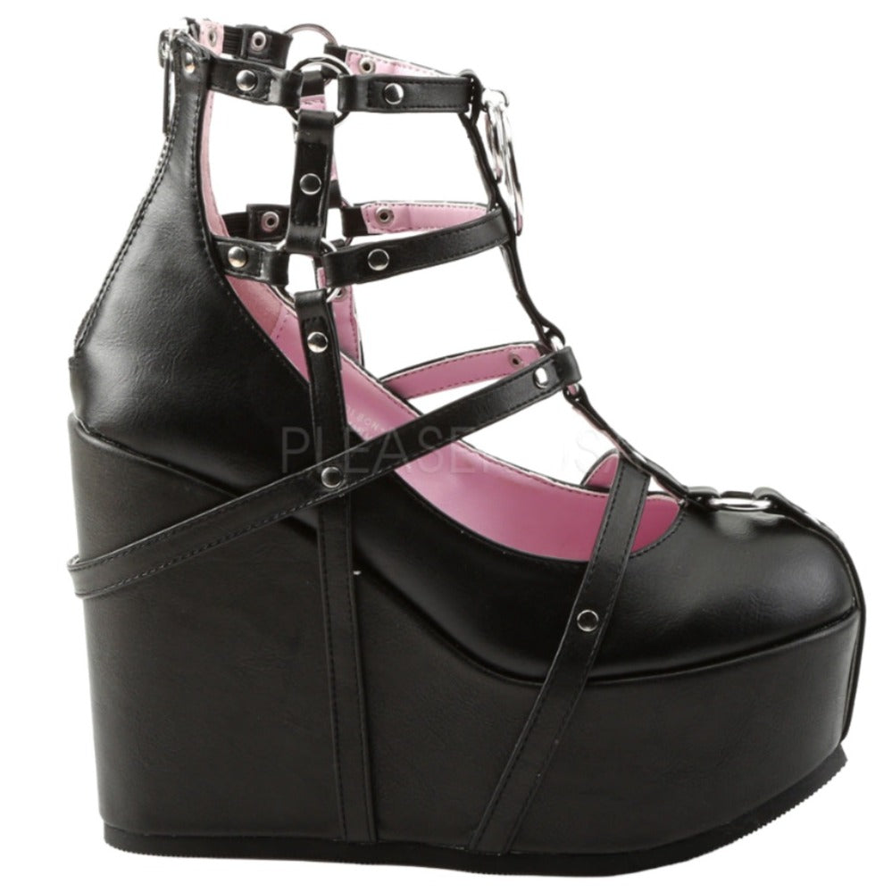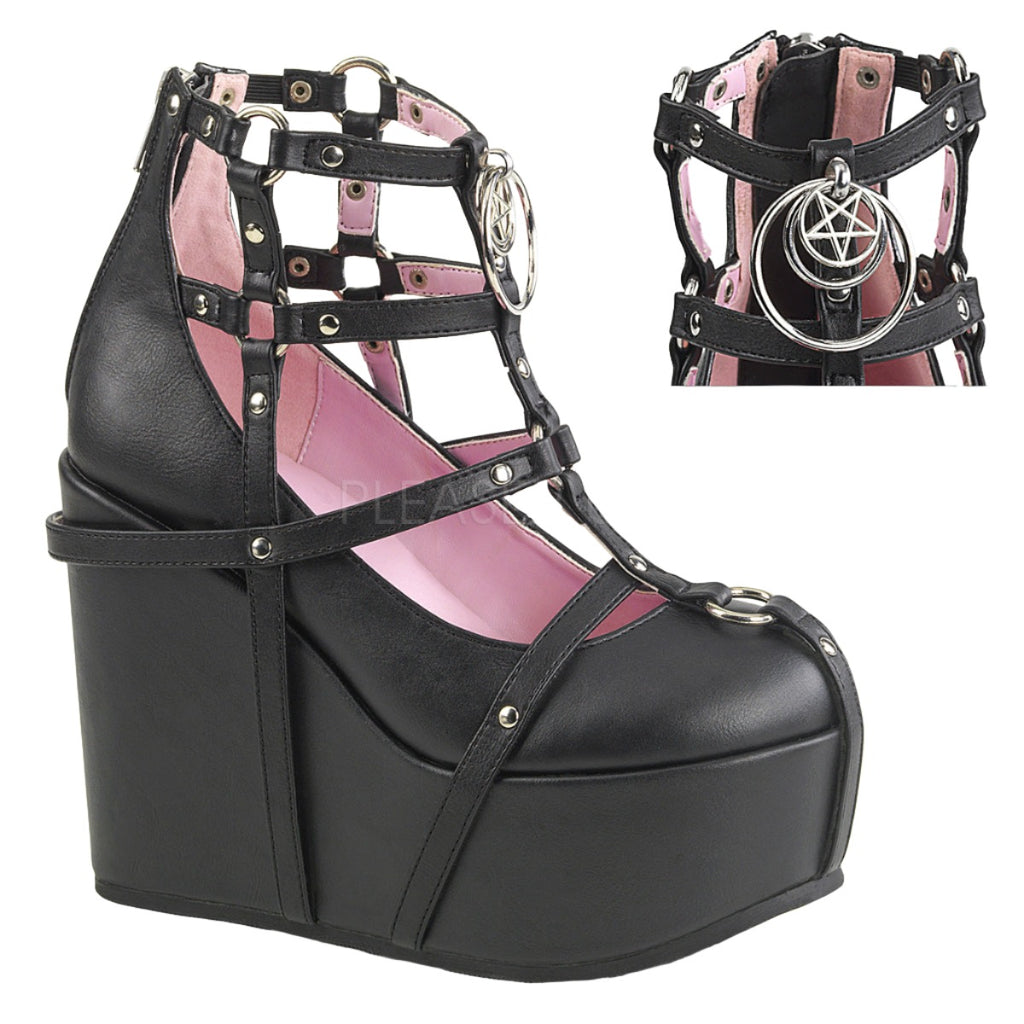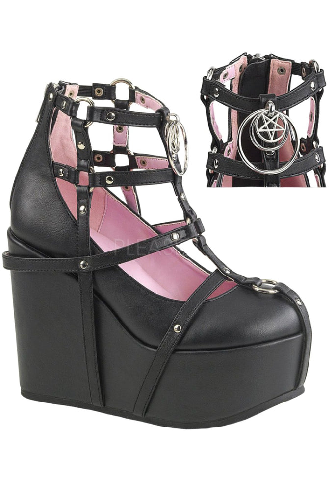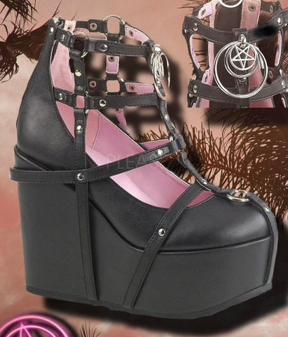 5" (12.7cm) Wedge Platform Cage Bootie Featuring Studding, Multi-Sized O-Rings & Pentagram Charm
