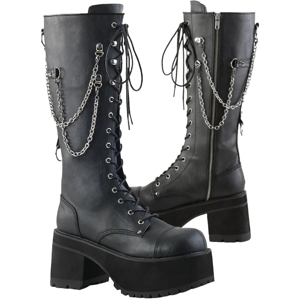 Channel your inner rockstar with the DemoniaCult Ranger-303 Men's Boots. These statement knee-high boots are a perfect blend of masculine style and edgy details, ideal for guys who love to add a touch of rebellion to their everyday look. Crafted with a cruelty-free vegan leather, they're perfect for the modern man who doesn't compromise on style or ethics.