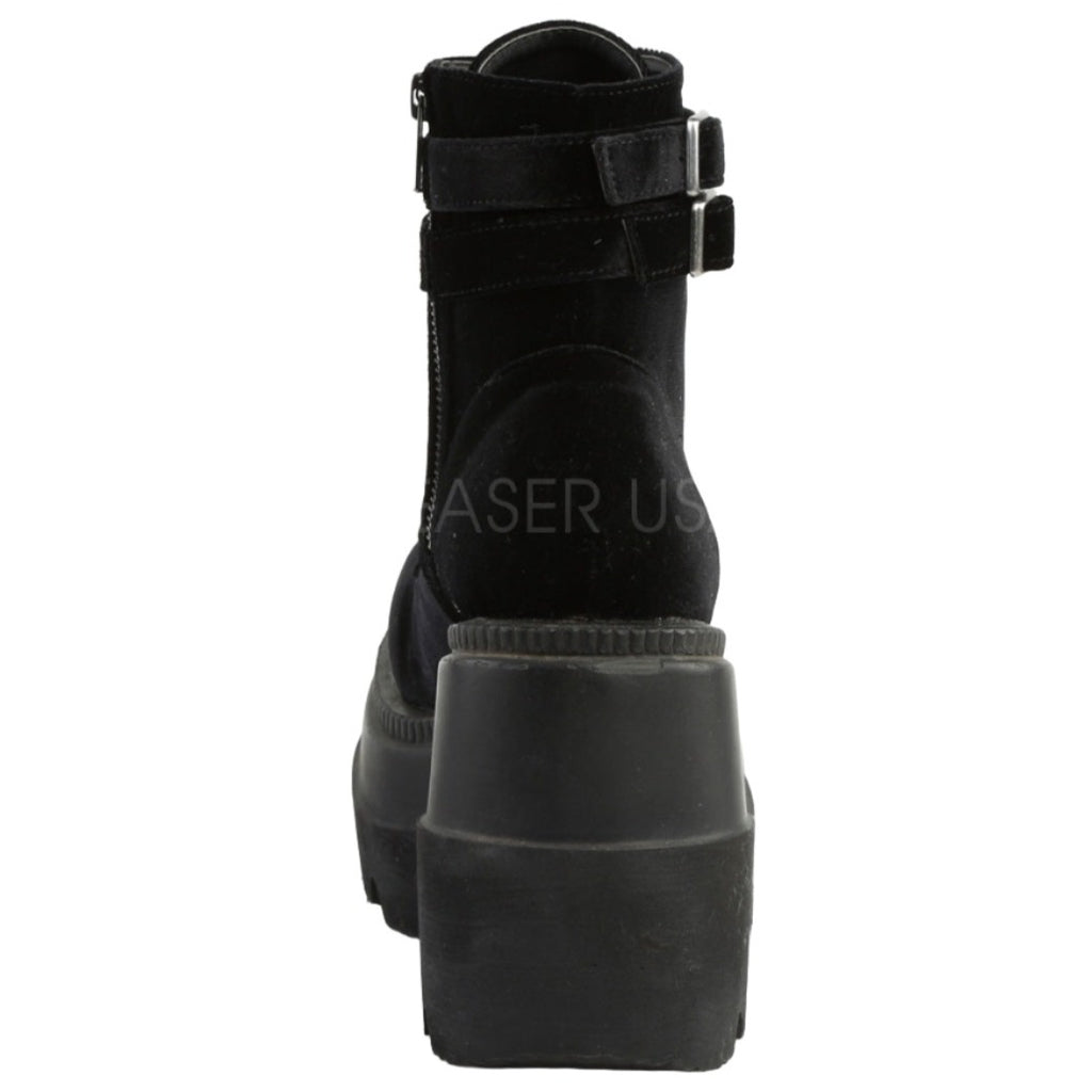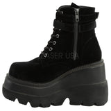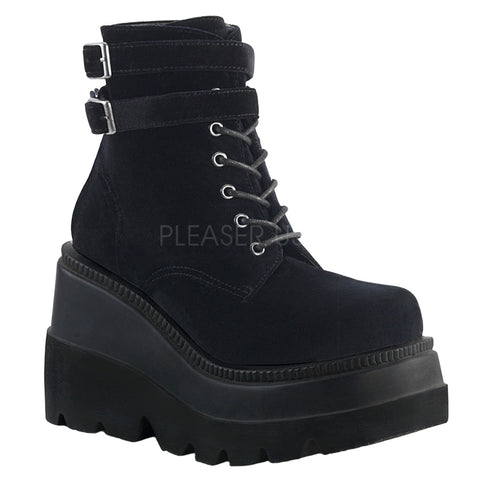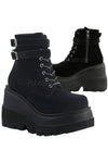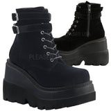 4 1/2" (114mm) Wedge Platform Lace-Up Front Ankle Boot with Double Buckled Ankle Straps, Inside Zip Closure.