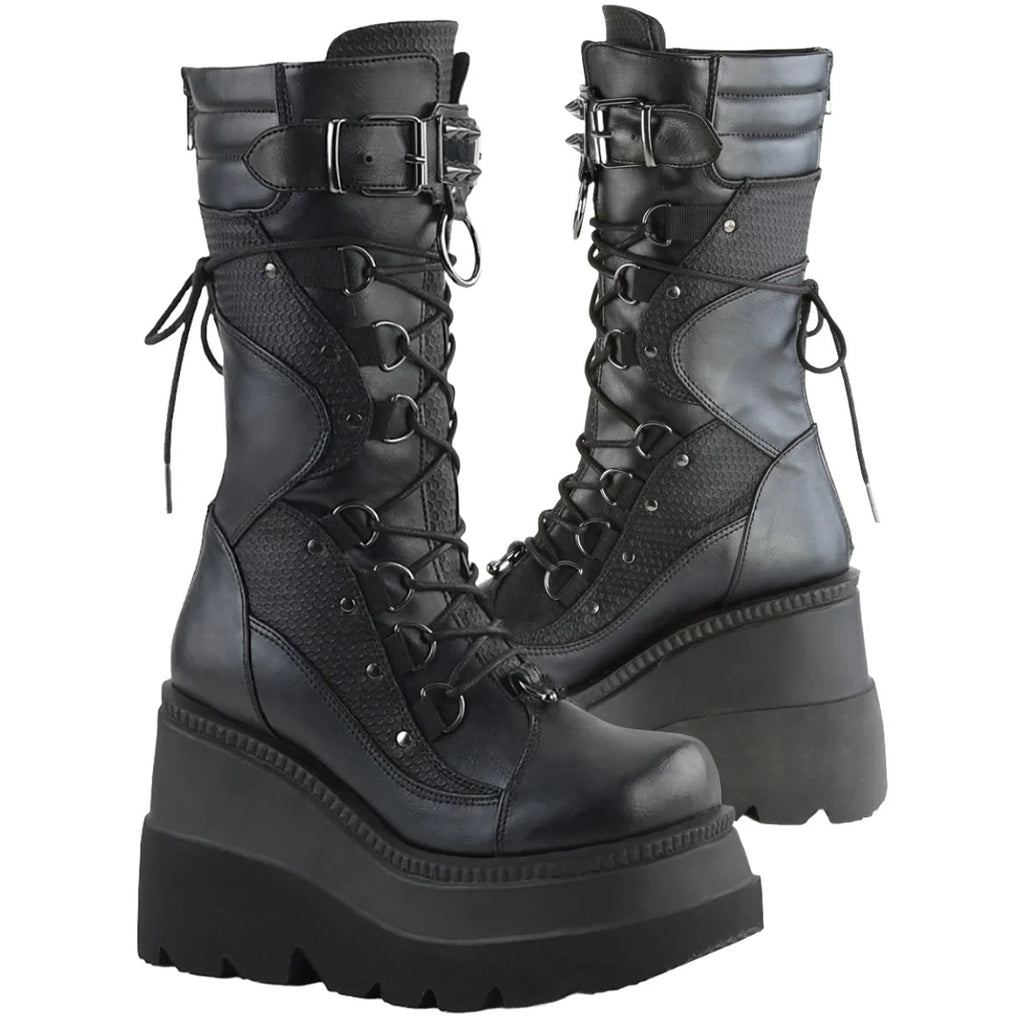 DemoniaCult Black Vegan Leather Boots SHAKER-70.