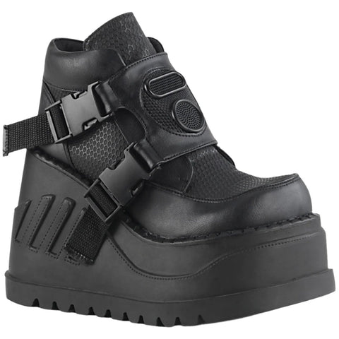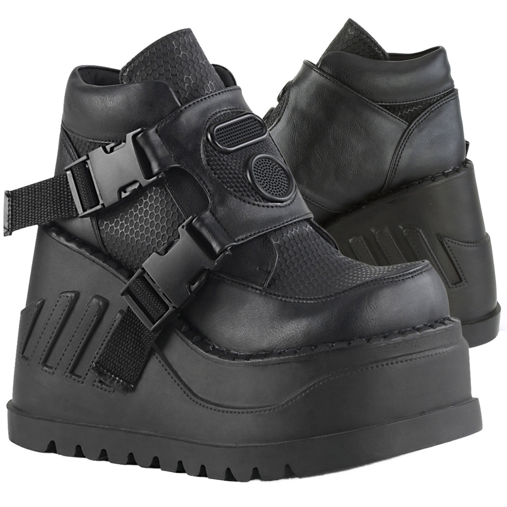 Command attention with the DemoniaCult STOMP-15 boot, a fierce vegan leather platform bootie that combines comfort and edgy style.