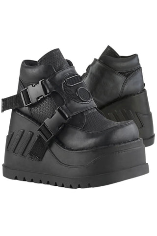 Available in a range of sizes. Stand out from the crowd and order your DemoniaCult STOMP-15 platform wedge booties today!