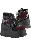 Calling all goths, alternative fashionistas, and those who crave a touch of dark romance! The DemoniaCult Burgundy Velvet STOMP-18 Boots are crafted to turn heads and ignite your inner mystery. Crafted from luxuriously soft burgundy velvet, these boots exude an aura of gothic elegance and captivating charm.