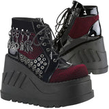 Embrace the Dark Romance: DemoniaCult Burgundy Velvet STOMP-18 Boots
